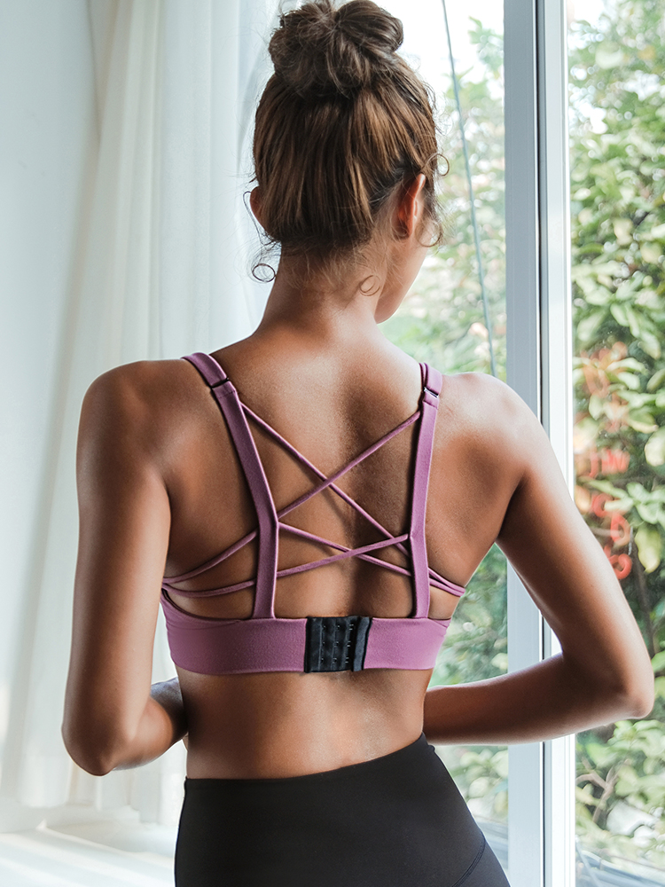Lightly padded cups Adjustable straps Strap back design Form-fitting design