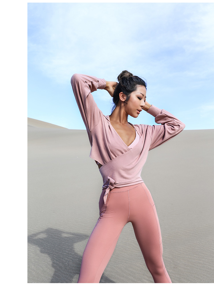 V-neck Wrap style Long sleeves Regular fit Lightweight fabric Hooded design