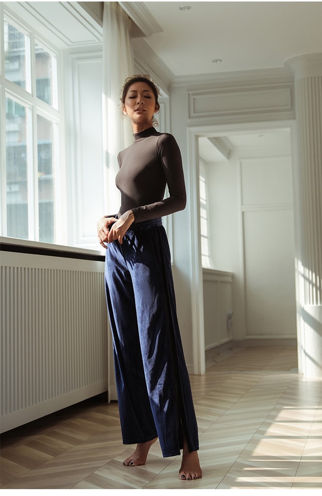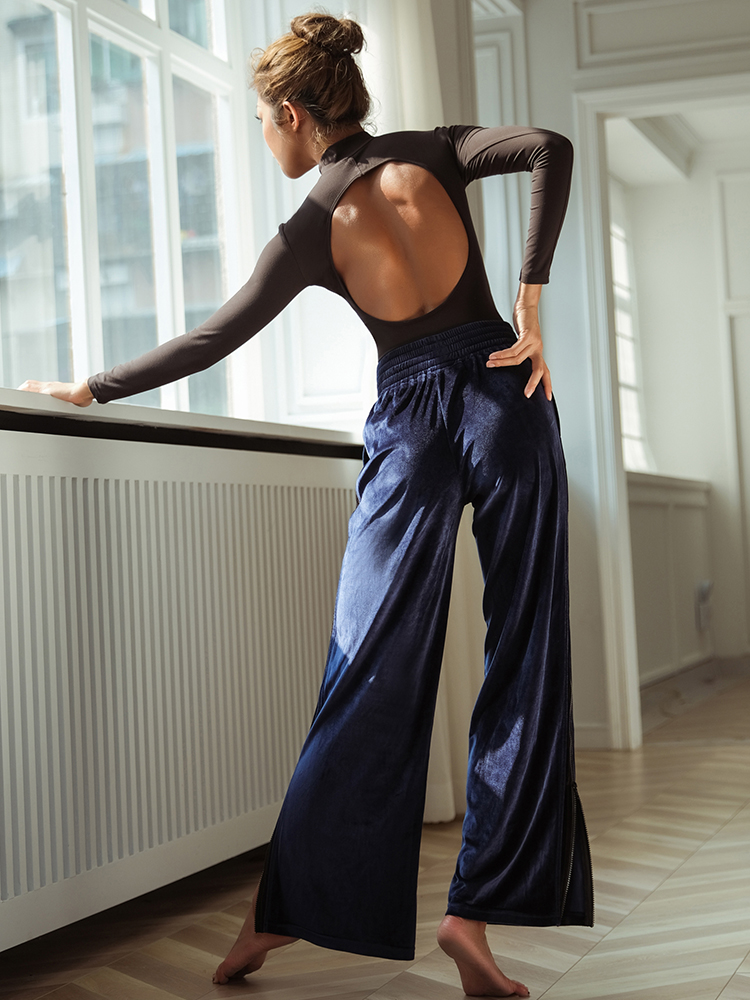 Stretch waistband Contrast side stripes Flared shape Soft velvet