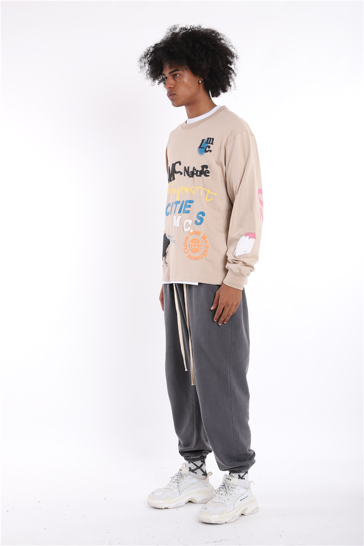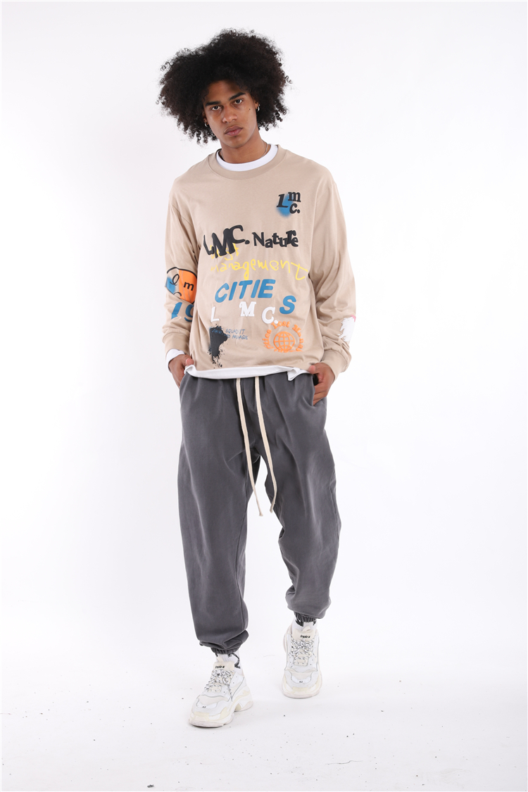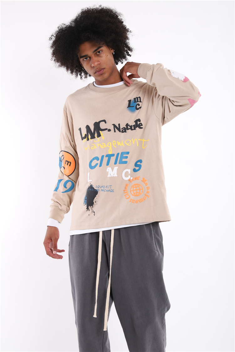MONIZA ZOX LMC LOST MANAGEMENT CITIES GRAFFITI PRINT LONG SLEEVED TEE SHIRT