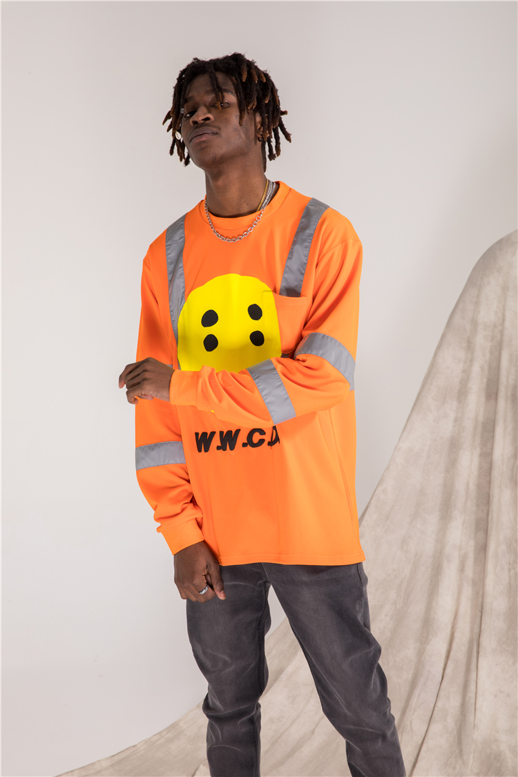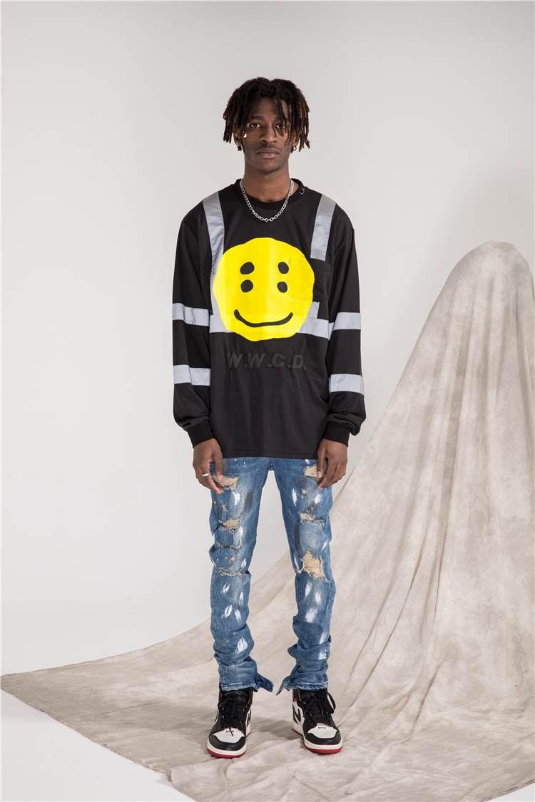 ROOKIE ROCKY SMILEY EMOJI FACE REFLECTIVE CREW NECK SWEATSHIRT