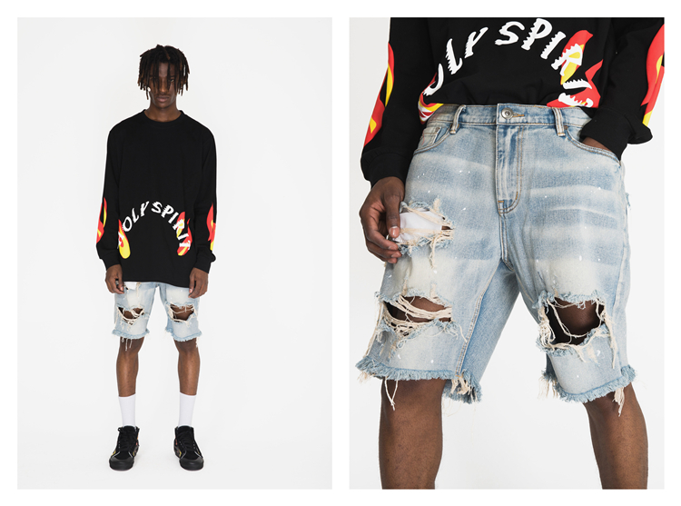 WANGZO DENGZO RIPPED WASHED DENIM JEAN SHORT PANTS