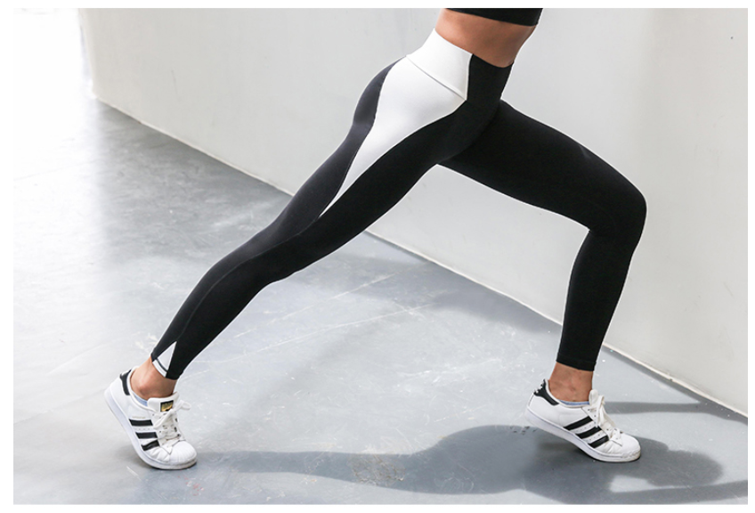Black and white High rise Stretchy waistband Contrast panel design Breathable mesh inserts Bodycon fit