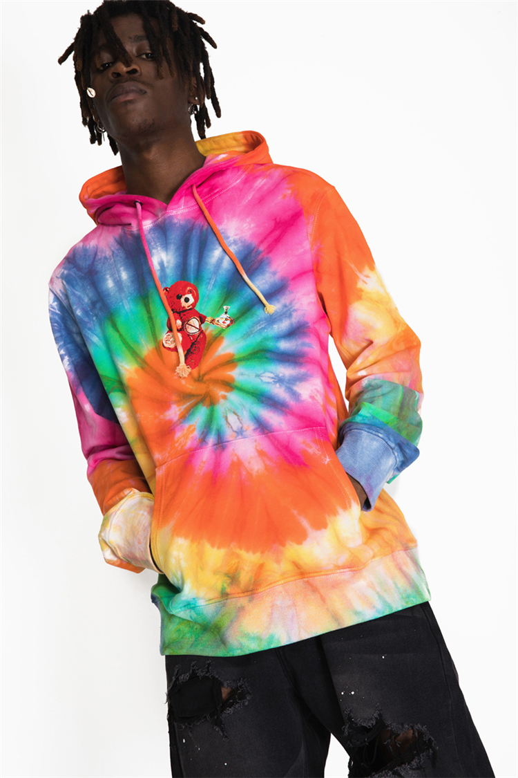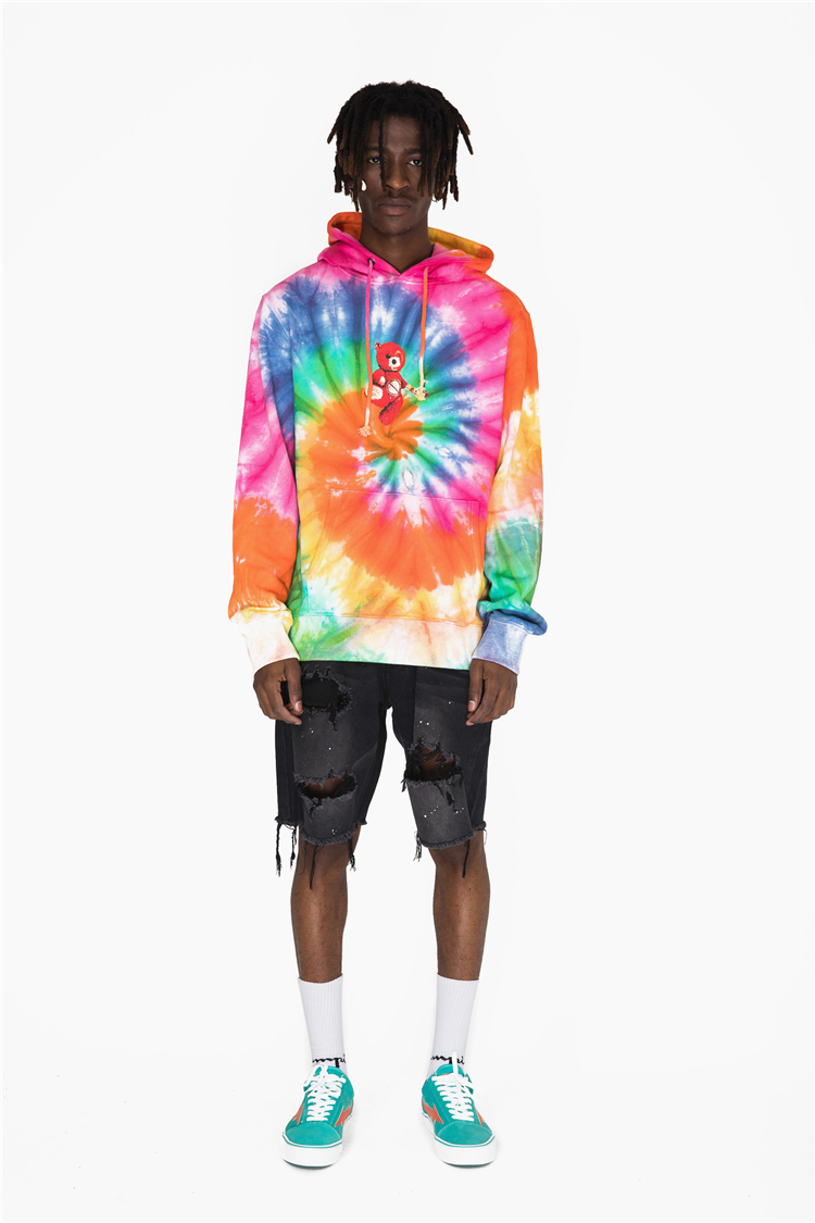 GRAFFITI ZAZO TIE DYED BEAR HOODIE SWEATSHIRT IN MULTI COLOR