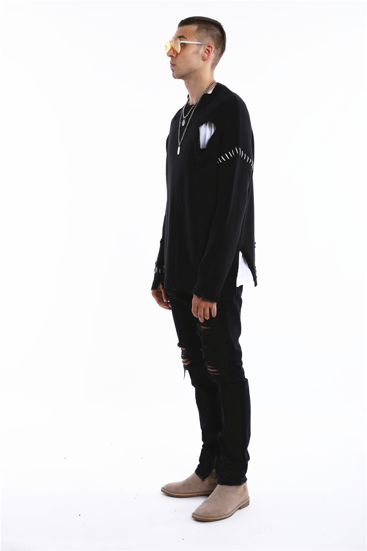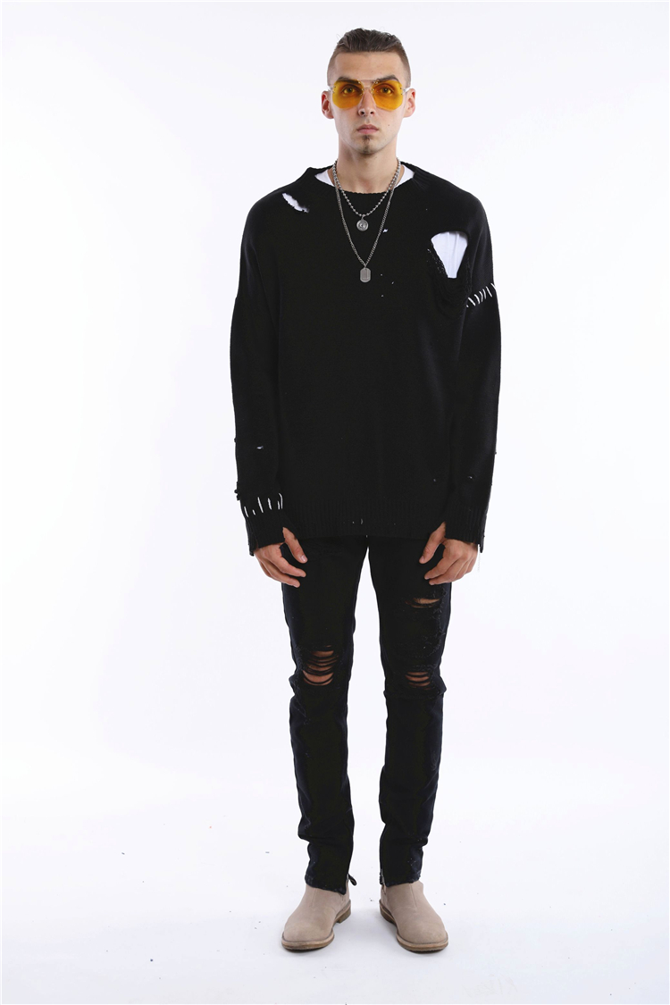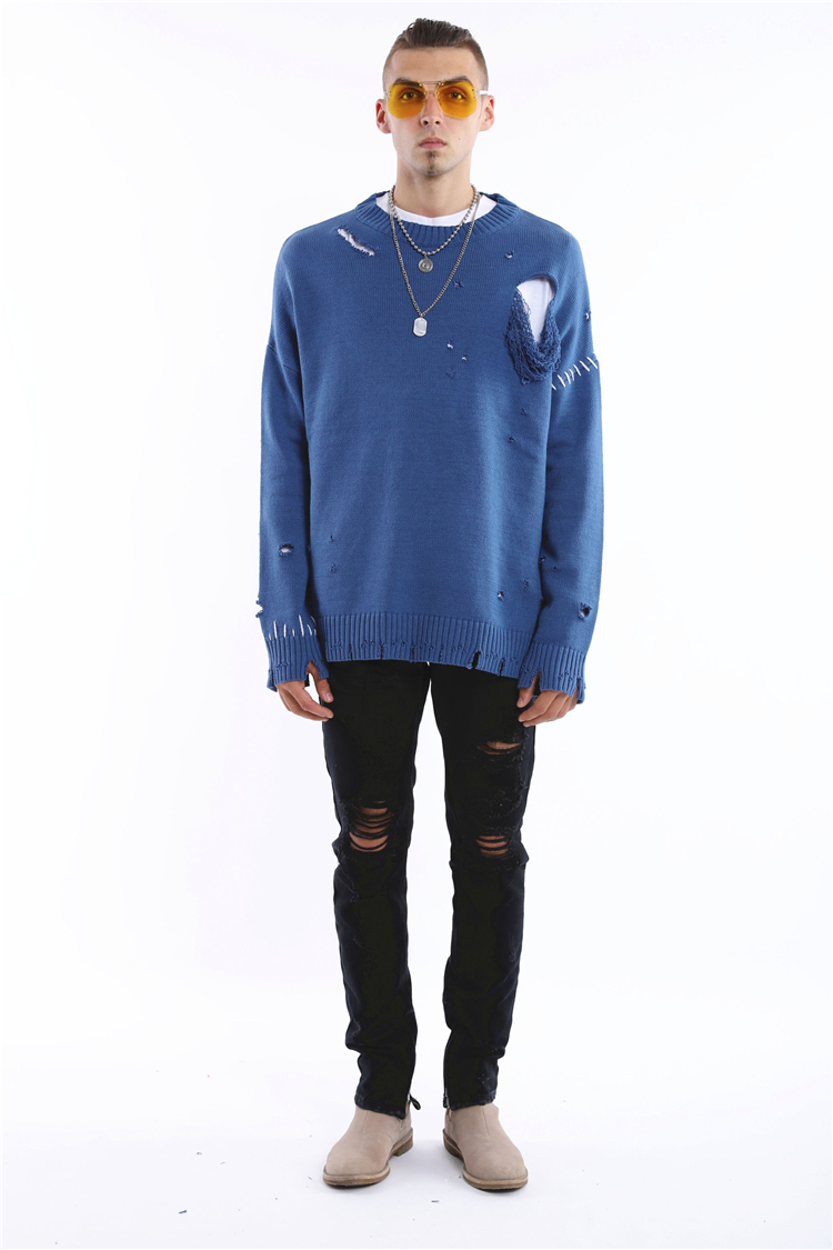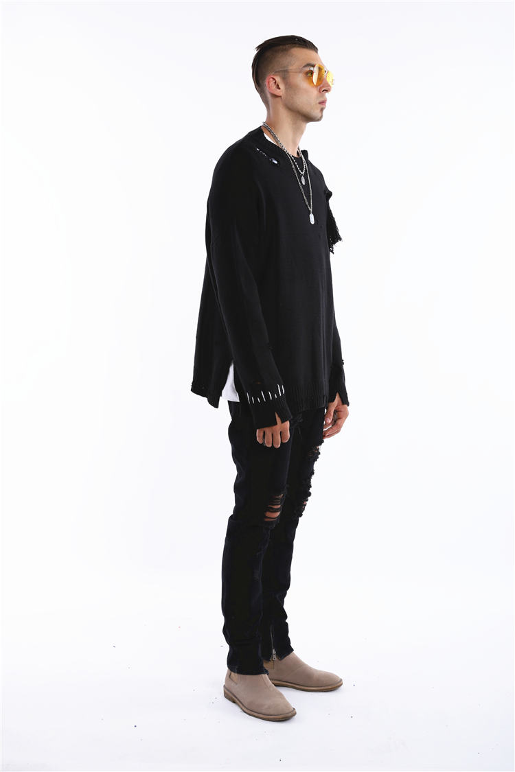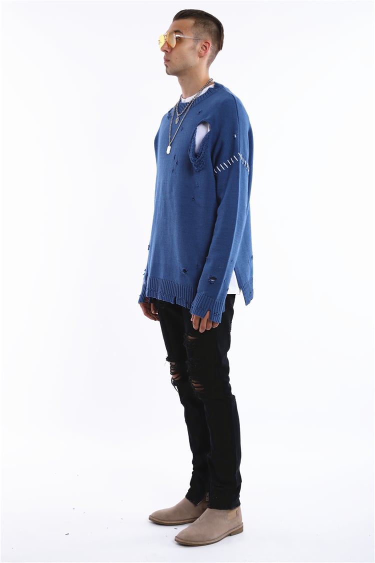 THE PLEXI RIPPED KNITWEAR CREW NECK SWEATER