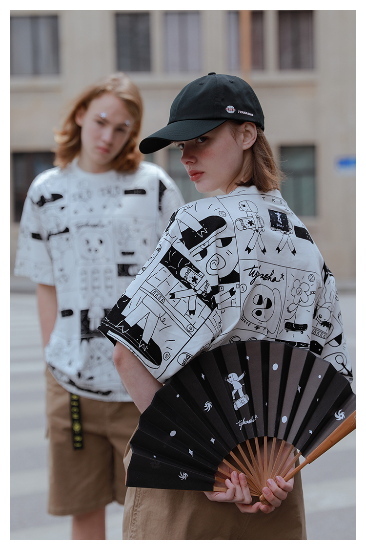 TYAKASHI VINTAGE INSPIRED GRAPHIC PRINT ALL OVER T SHIRT