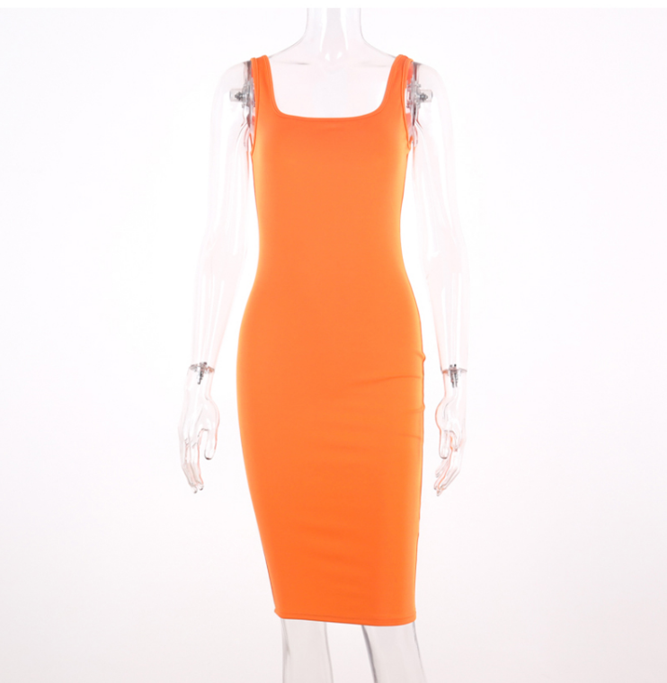SHEMODA FRENCH URBAN STYLE OPEN CHEST STRAP DRESS IN ORANGE