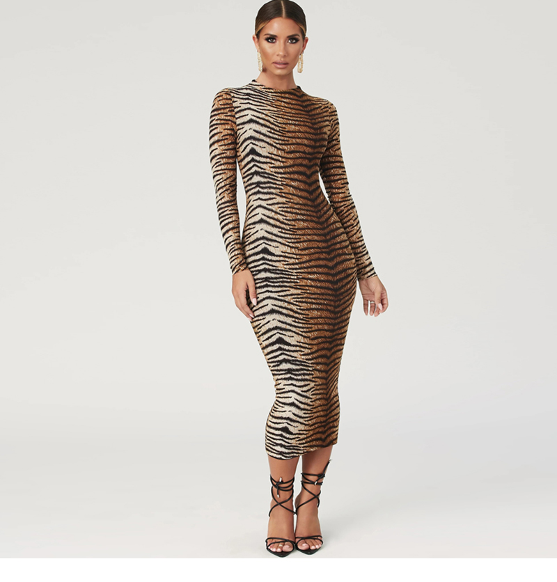 SHEMODA FRENCH STYLE LEOPARD TIGER SLIM WAIST PENCIL DRESS