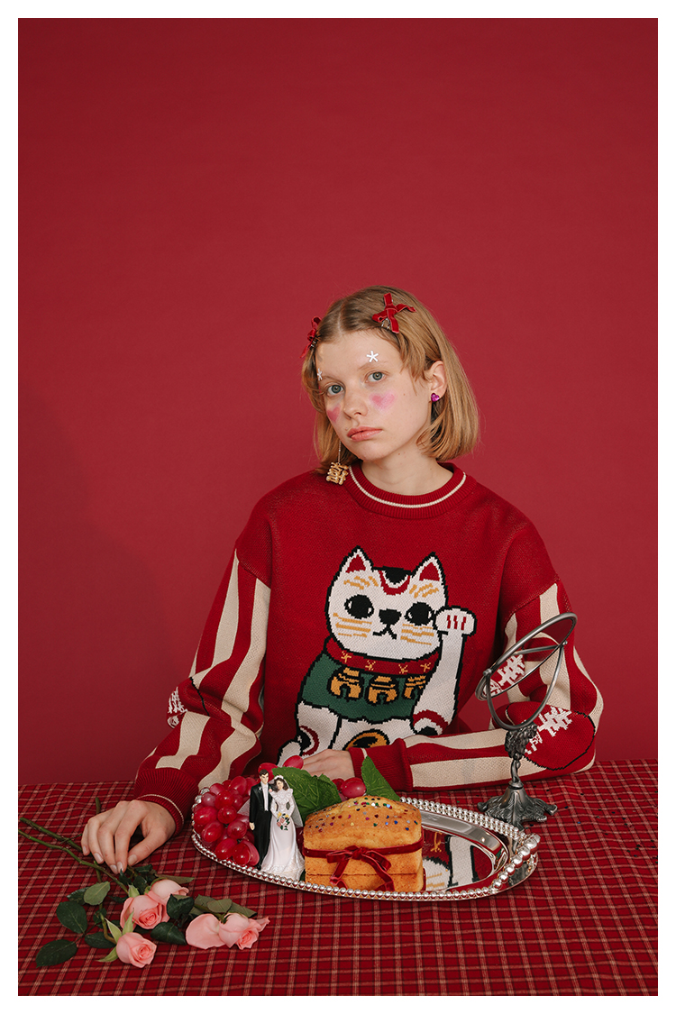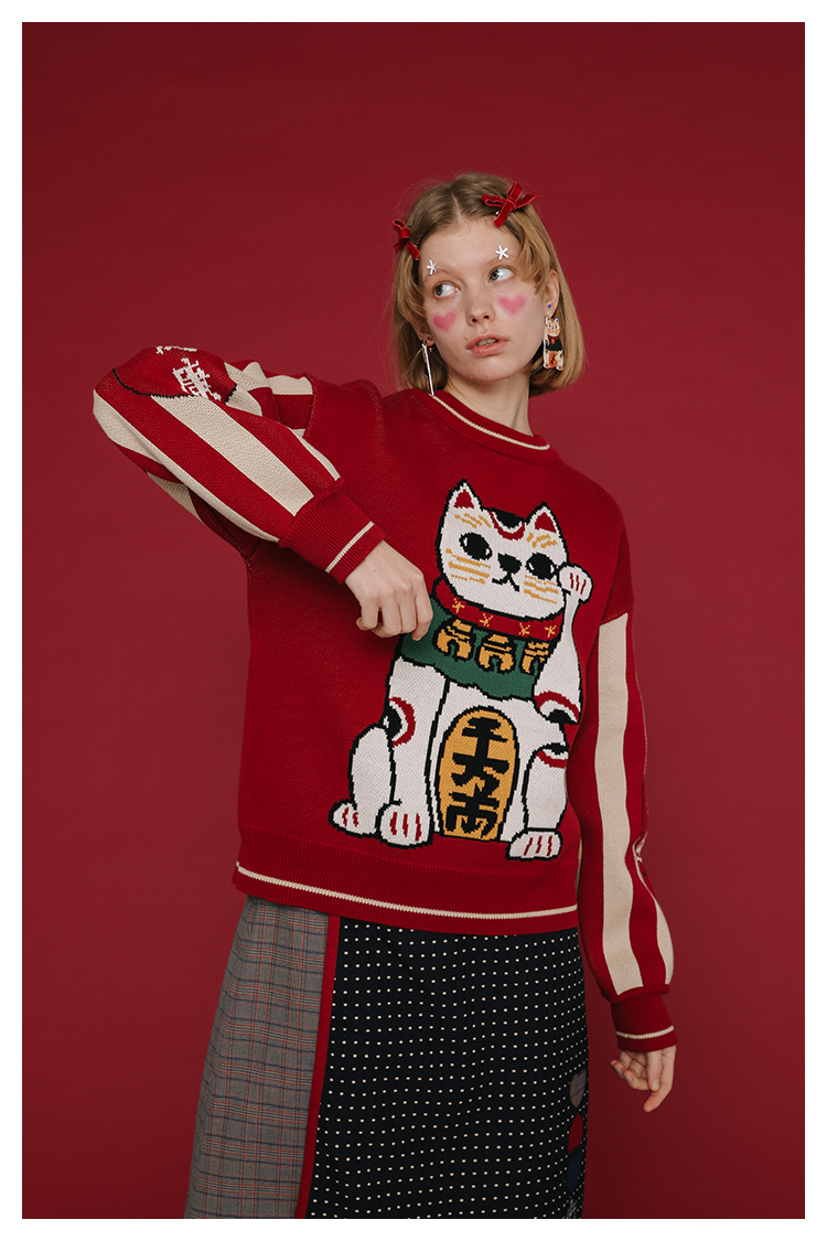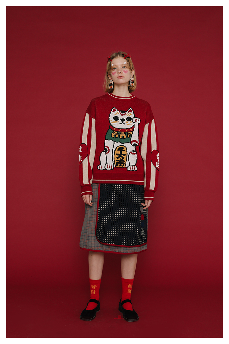 TYAKASHI MANEKI NEKO PRINT JUMPER IN RED