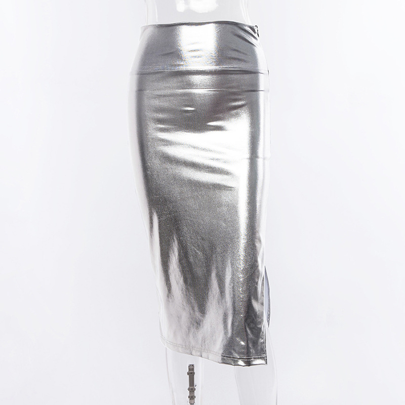 SHEMODA HAYLEY HIGH WAIST SPLIT SKIRT IN SILVER