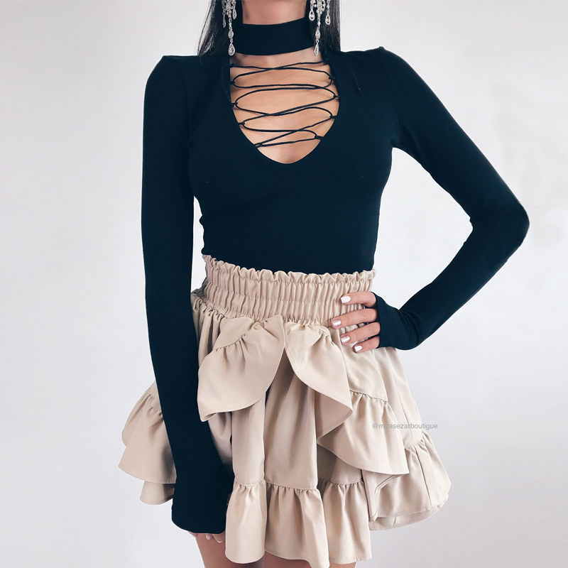 SHEMODA HAYLEY CROSS STRAP DEEP V NECK LONG SLEEVE BODY