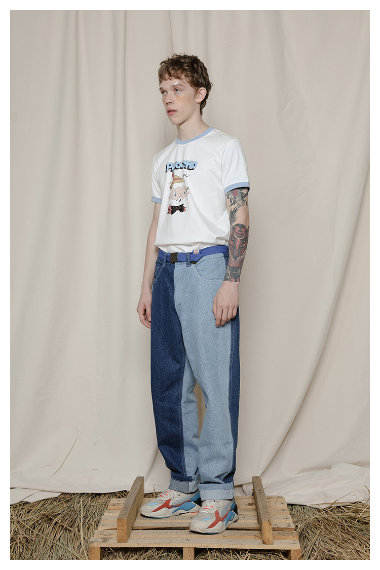 TYAKASHI CONTRAST COLOR SKATER JEANS
