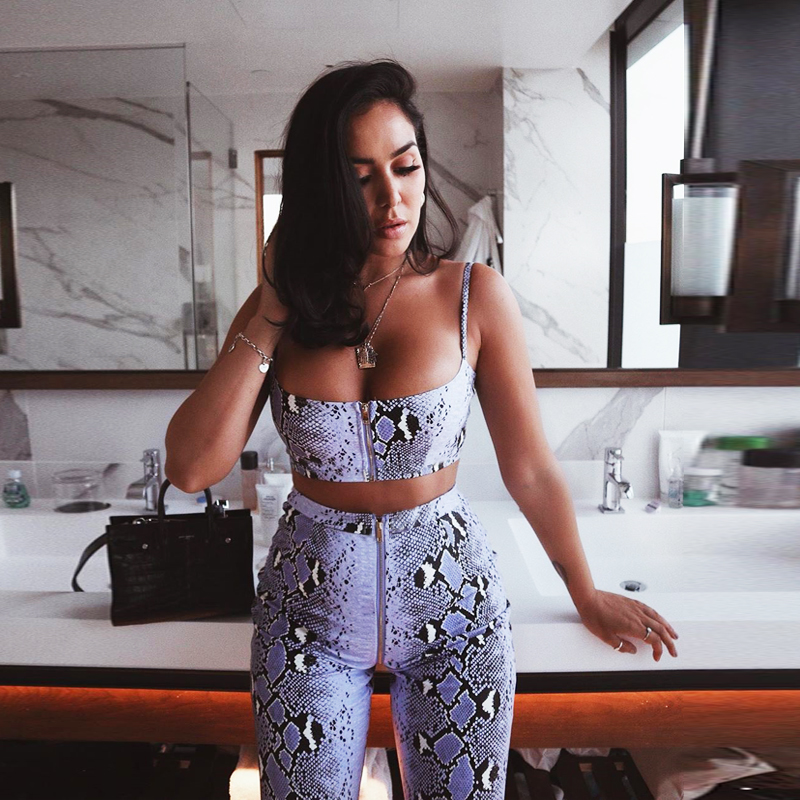 FLOPSIA HIGH WAIST SNAKE PRINT PANTS WITH MATCHING CROP TOP