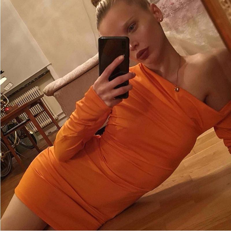 FLOPSIA SHEMODA SLANT SHOULDER LONG SLEEVED SLIM DRESS