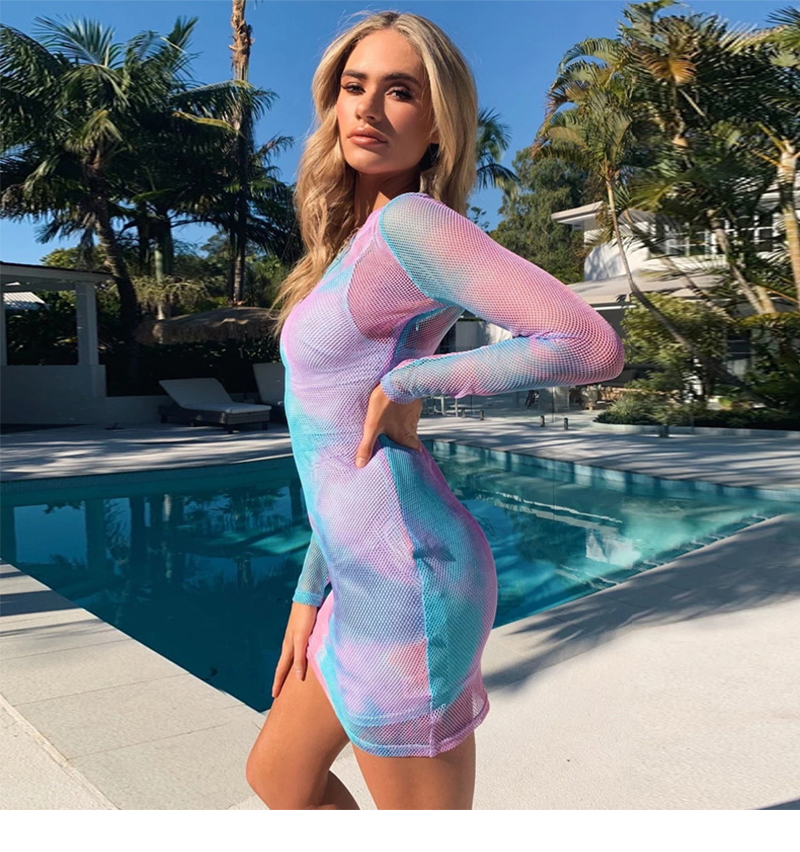 FLOPSIA FEBUJA TIE DYED MESH LONG SLEEVED HIPSTER STYLE DRESS