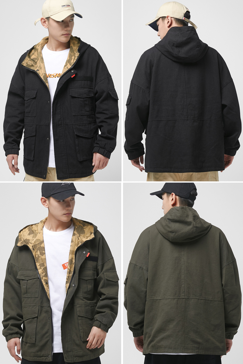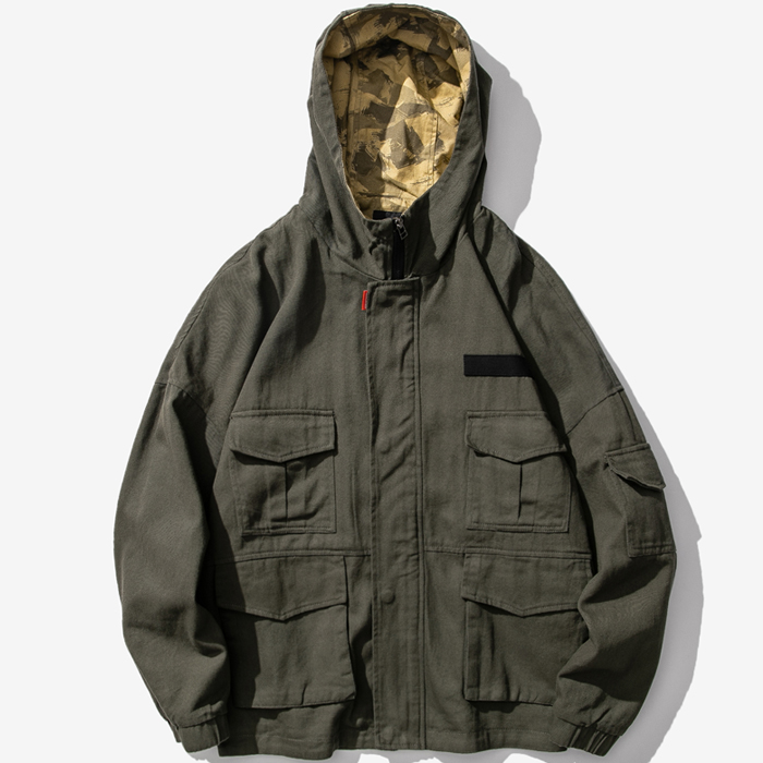VIPO ARMY STYLE MULTI POCKET CASUAL COACH JACKET WITH HOODIE