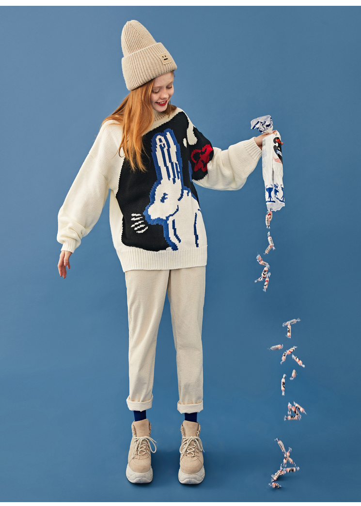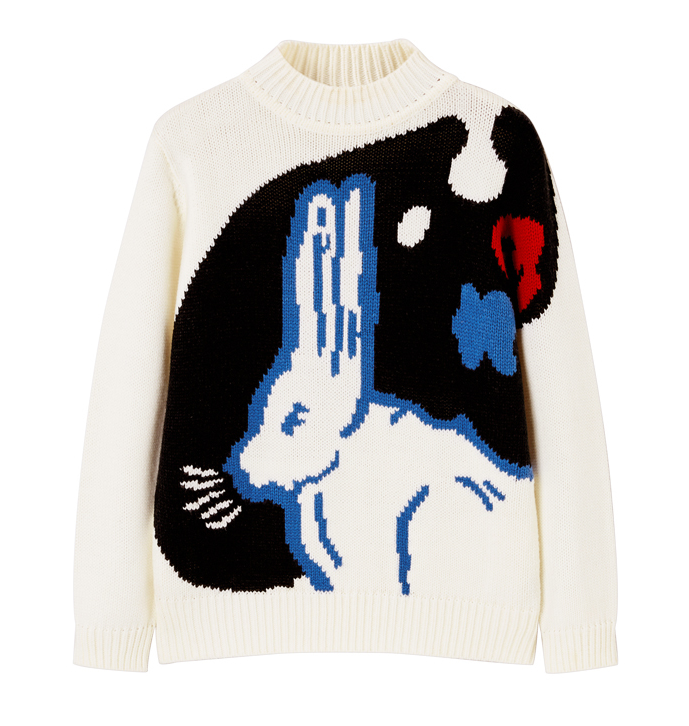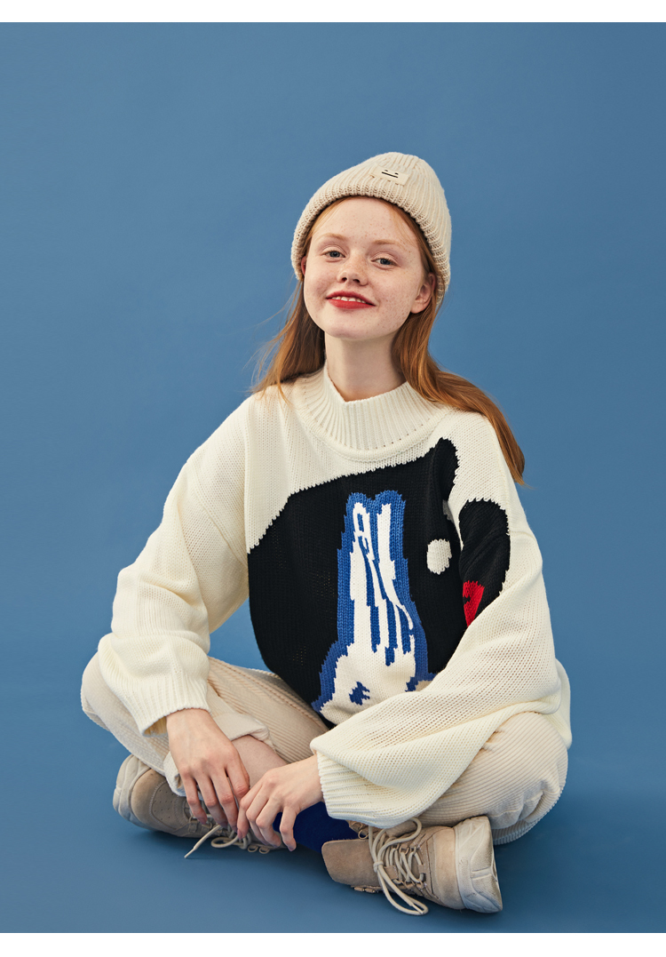 LEDDIN DESIGN WHITE RABBIT DESIGN HIGH NECK JUMPER