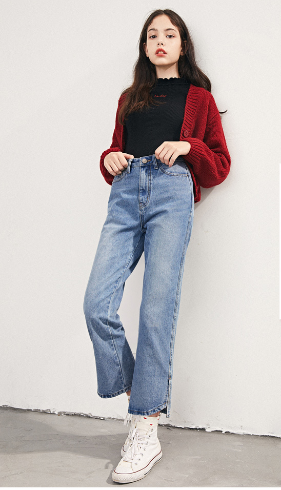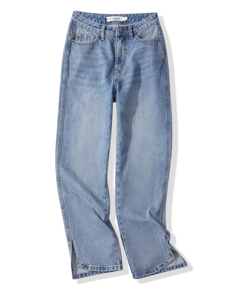 LEDDIN DESIGN STRAIGHT LEG JEANS WITH SIDE SPLIT DETAIL