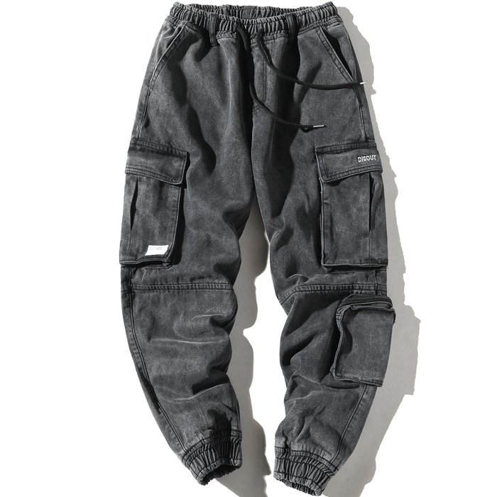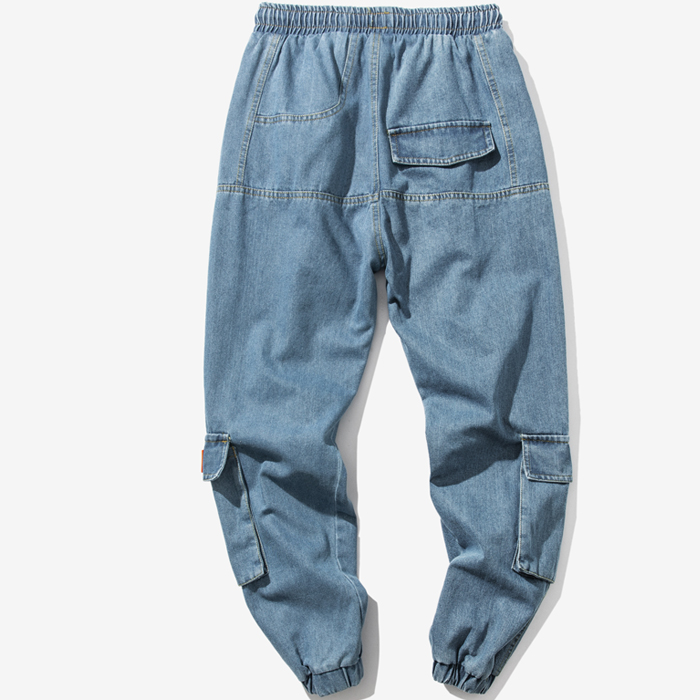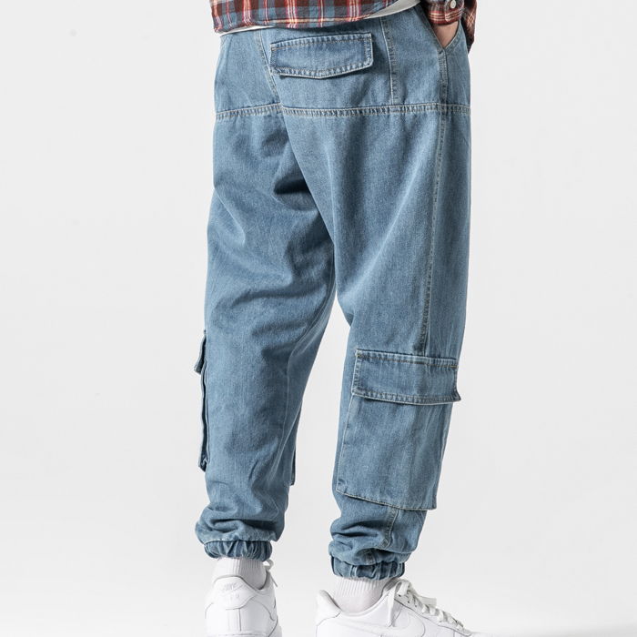 FALCONA DISCOUT IRREGULAR MULTI POCKET DENIM JEAN JOGGER PANTS