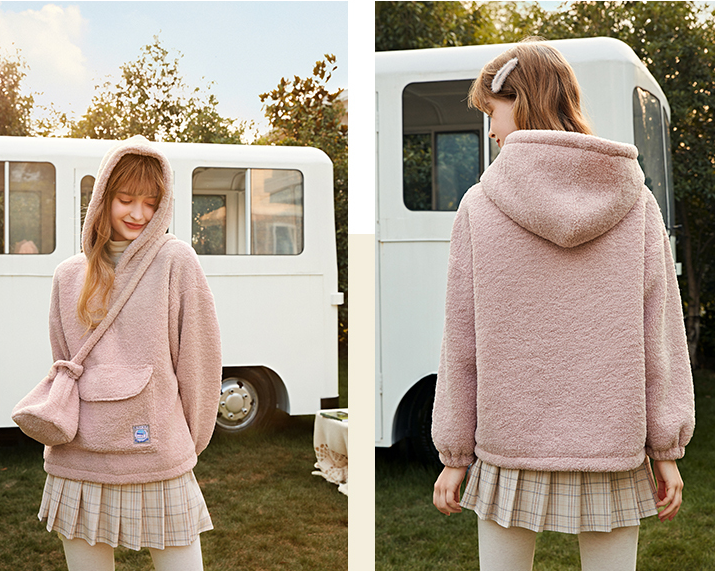 LEDDIN DESIGN OVERHEAD POLAR HOODIE IN PINK