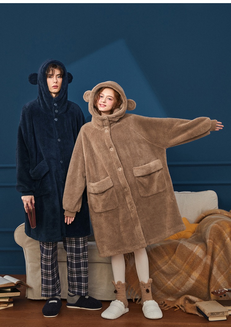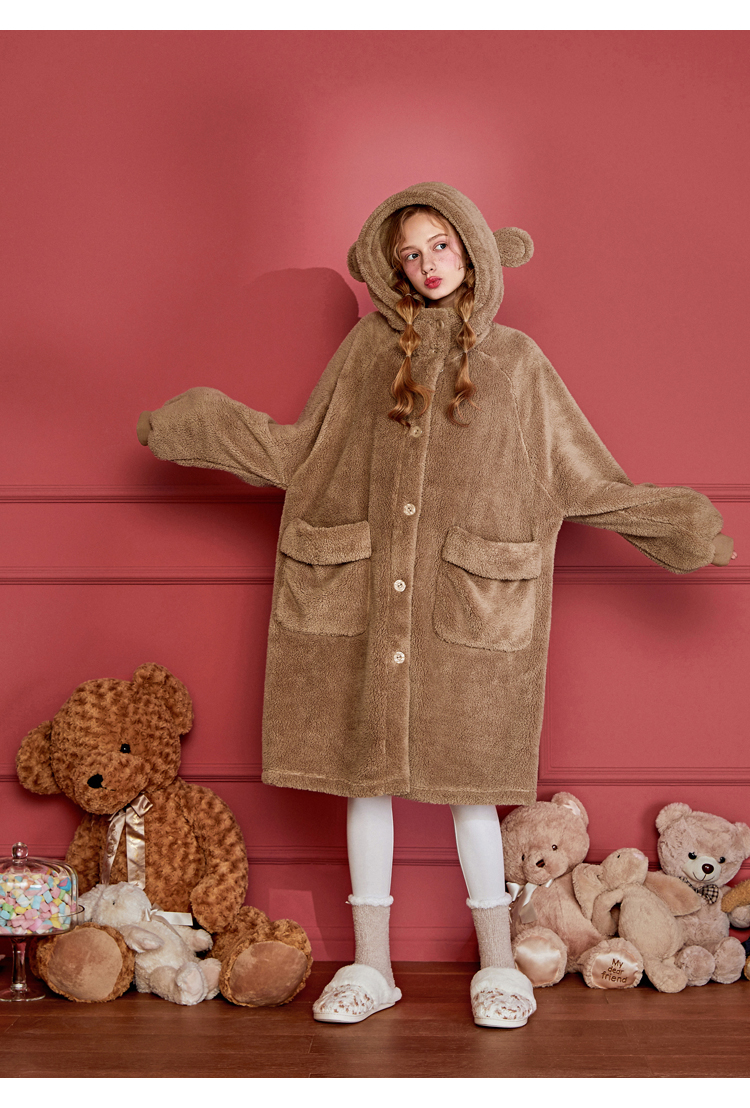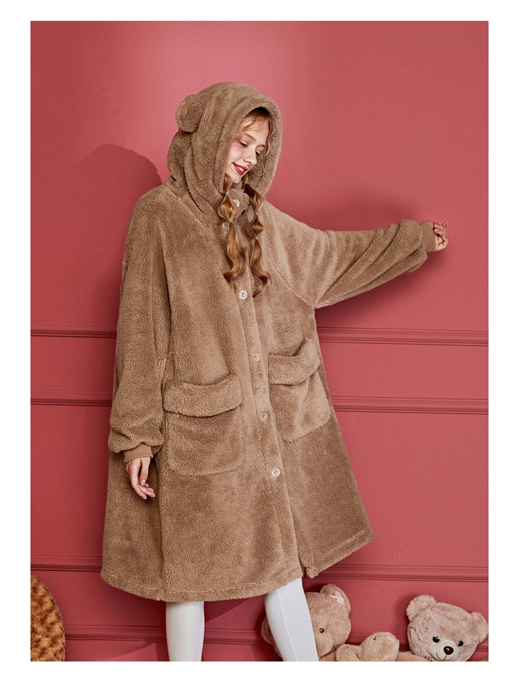 LEDDIN SUPER SOFT HOODED POLAR LONG LINE HOME WEAR PYJAMA