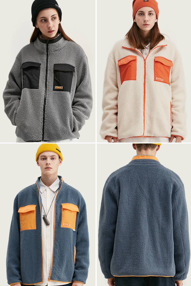 URBAN STYLE TAFFO CONTRAST COLOR POCKETS FULL ZIP FLEECE SWEATER