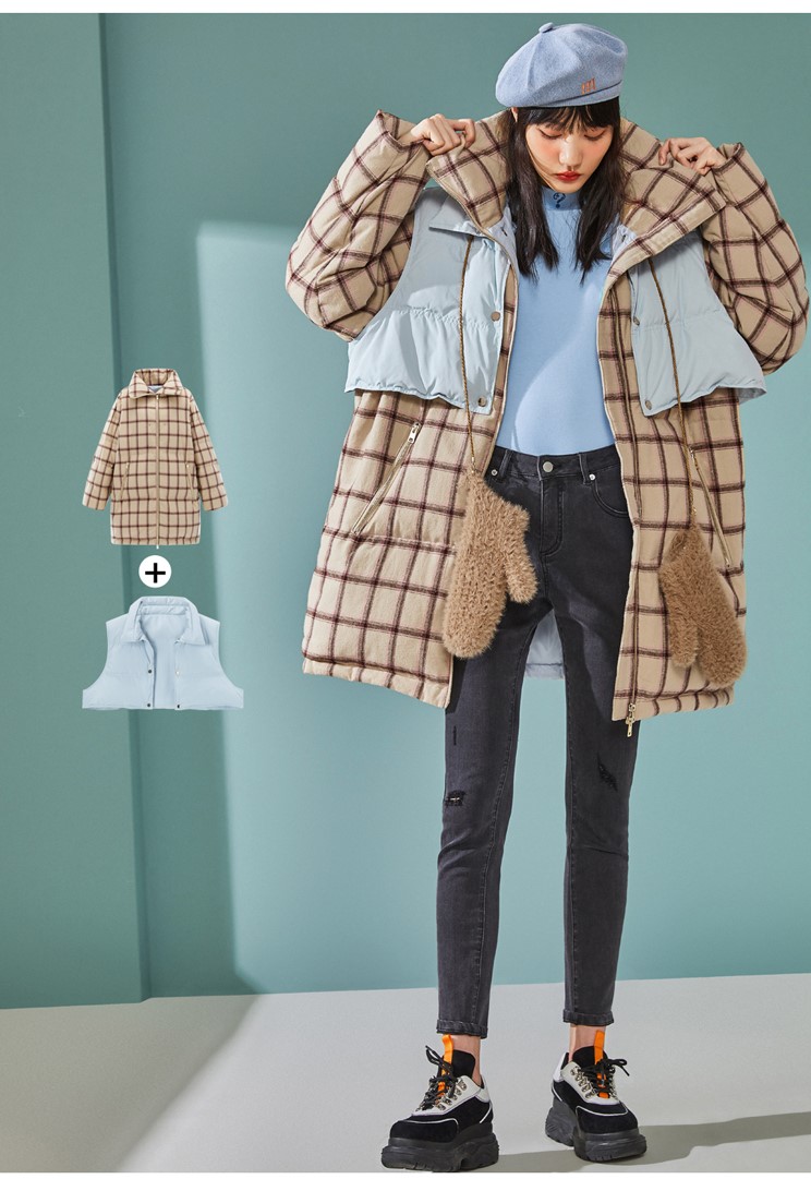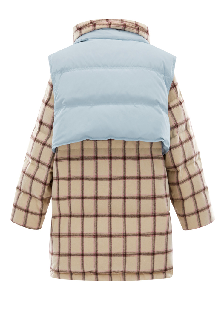 PEACE BIRD LONG LINE CHECK PUFFER JACKET WITH DETACHABLE VEST