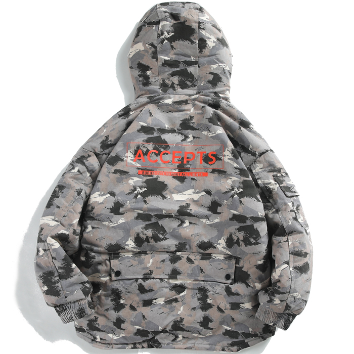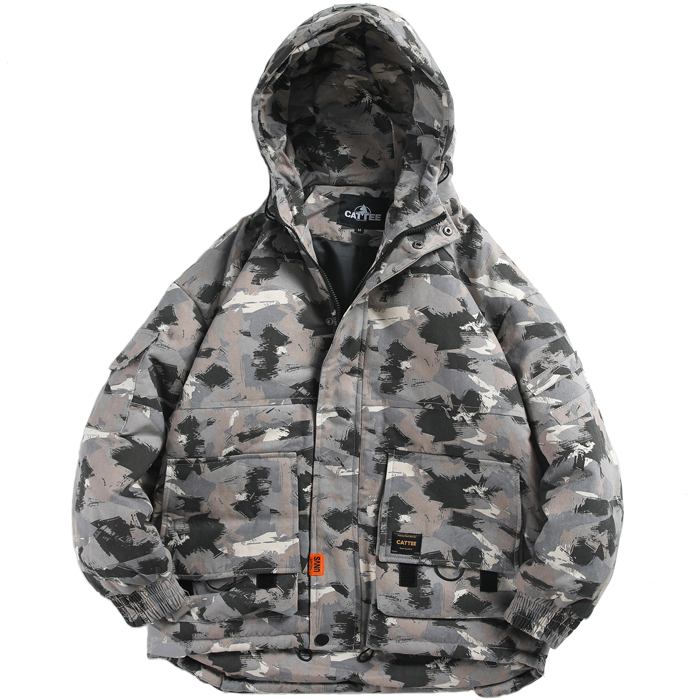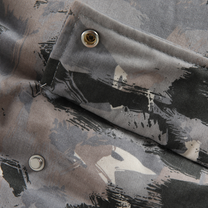 CHUCK CATZO STAND COLLAR CAMOUFLAGE HOODED JACKET IN GRAY