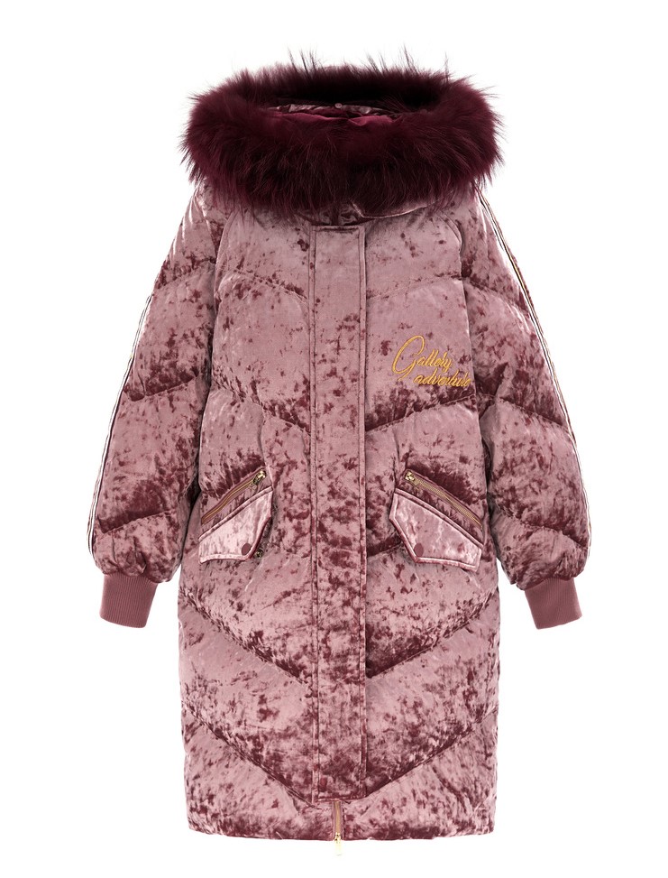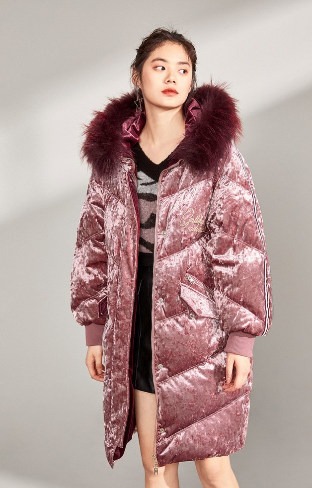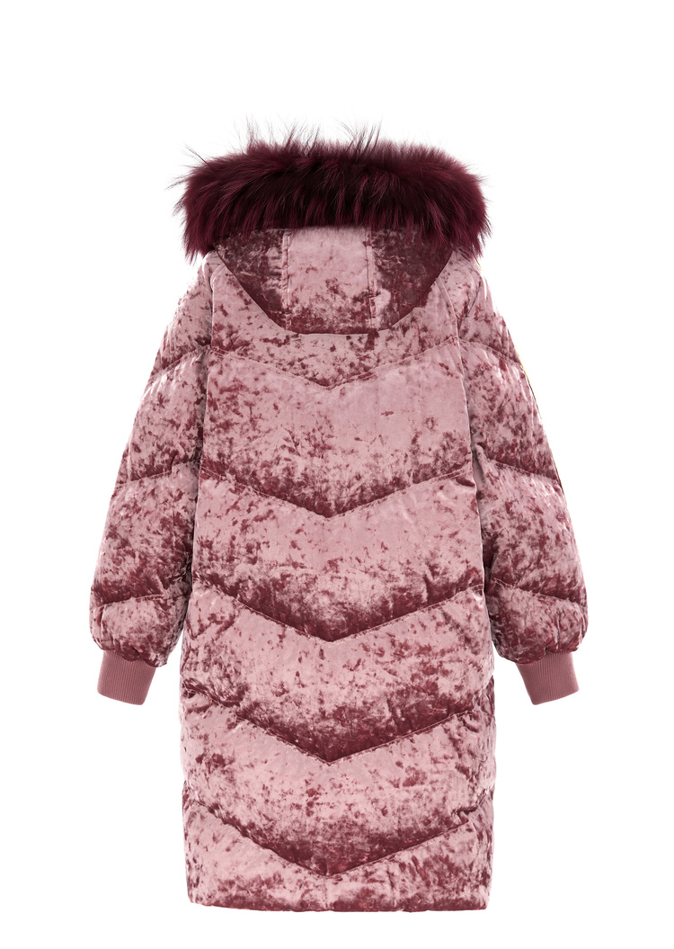 PEACE BIRD VELVET LONG LINE PADDED JACKET IN DUSTY PINK
