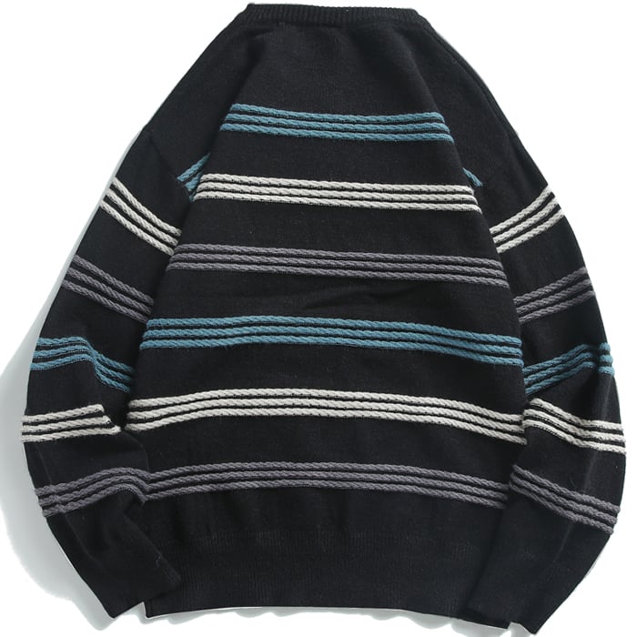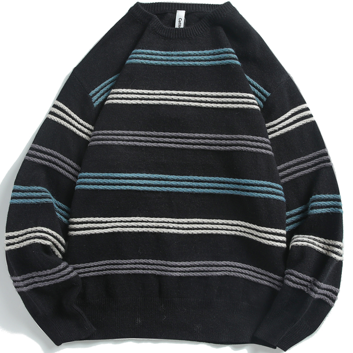 ZOMOZIE HORIZONTAL STRIPES CREW NECK SWEATERS