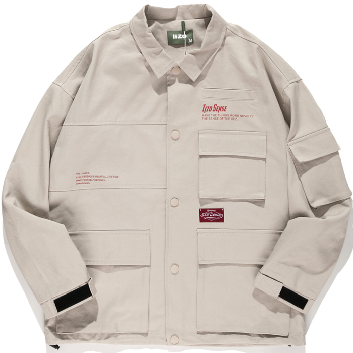 IJZO SENSE BOOPDO DESIGN MULTI POCKET VELCRO SLEEVES WINDBREAKER JACKET