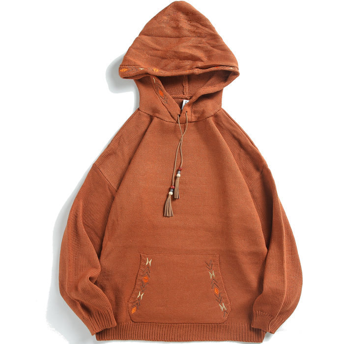 WIZLORA IZJI KANGAROO POCKET HOODED SWEATER WITH TASSELS