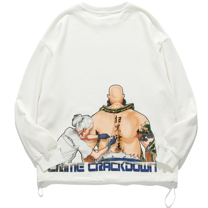ZUPITZO BROOK FAR EAST CHARACTERS TATTOO PRINT CREW NECK SWEATSHIRTS
