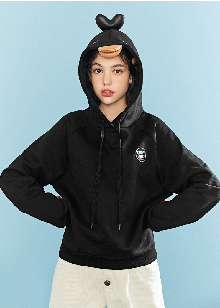 PEACE BIRD LUCKY DUCK SWEATSHIRT WITH ANIMAL FIGURED HOOD
