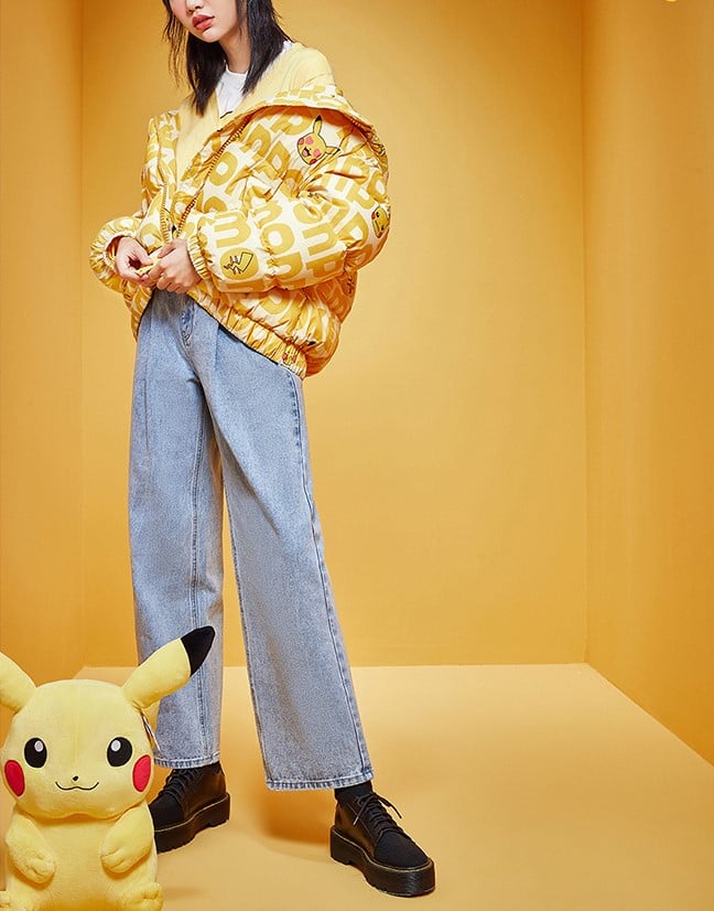 PEACE BIRD POKEMON EDITION PUFFER JACKET IN YELLOW