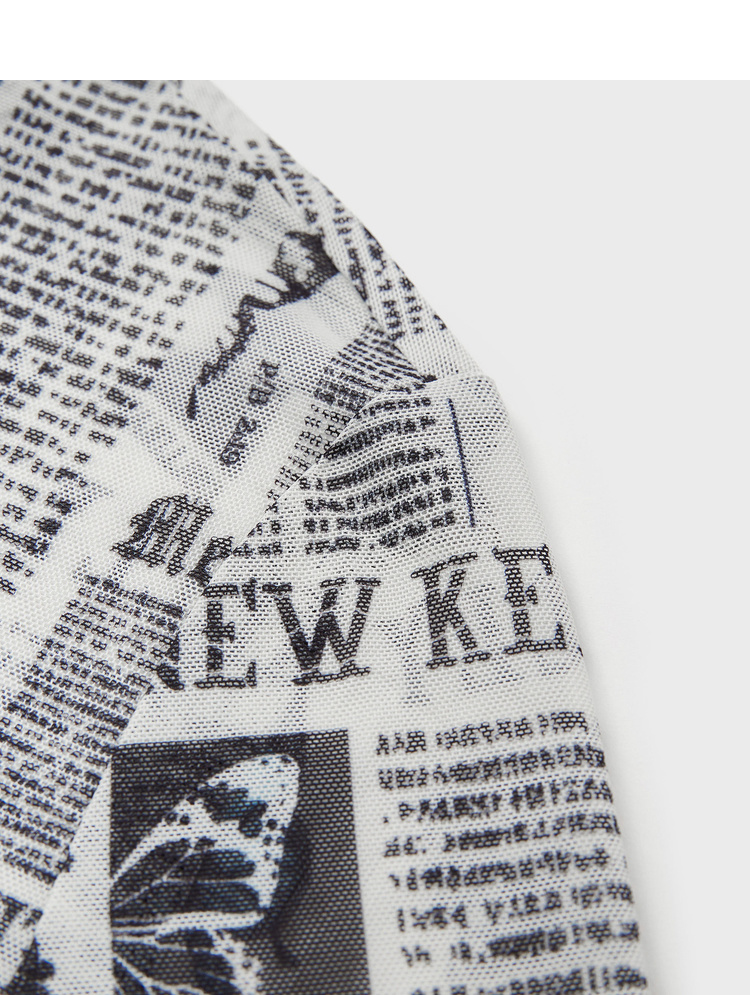 All-over newspaper print High neck Long sleeves All-over print Slim fit Fine mesh
