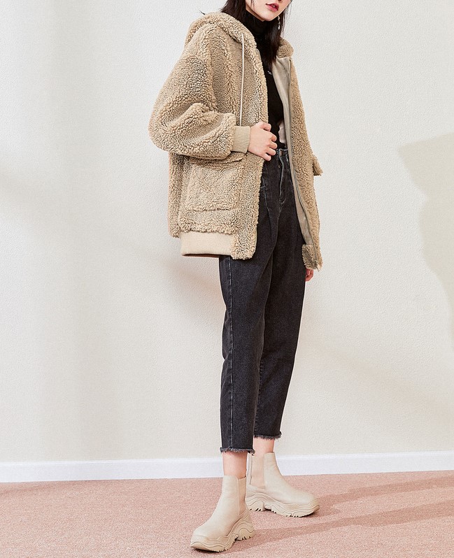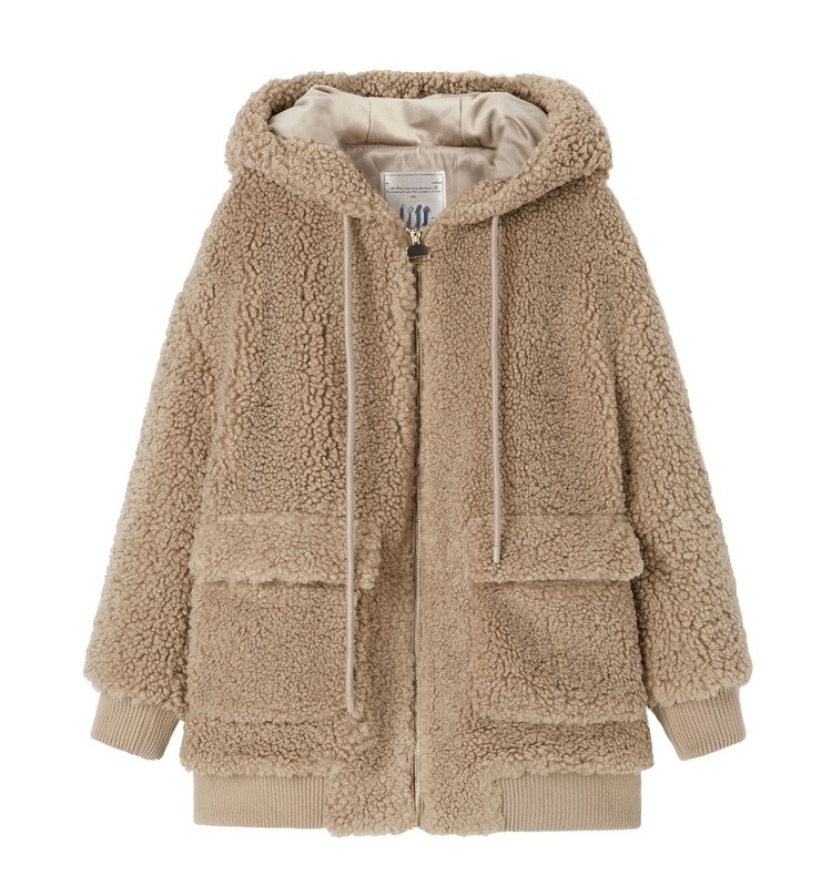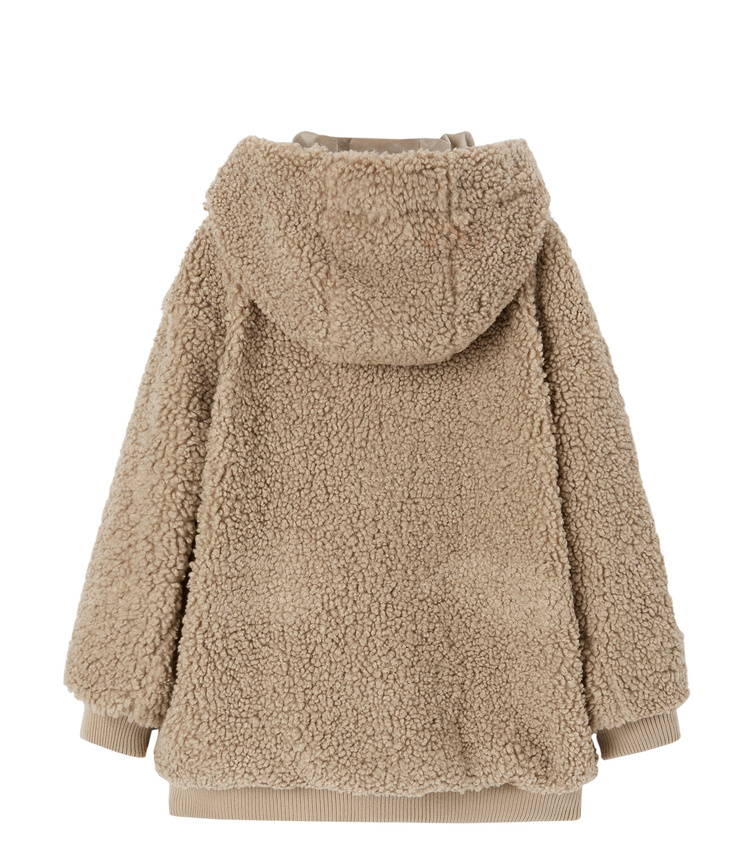 PEACE BIRD TEDDY HOODED BORG JACKET IN CREAM