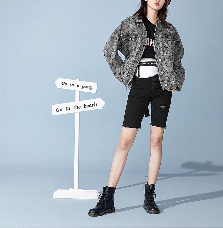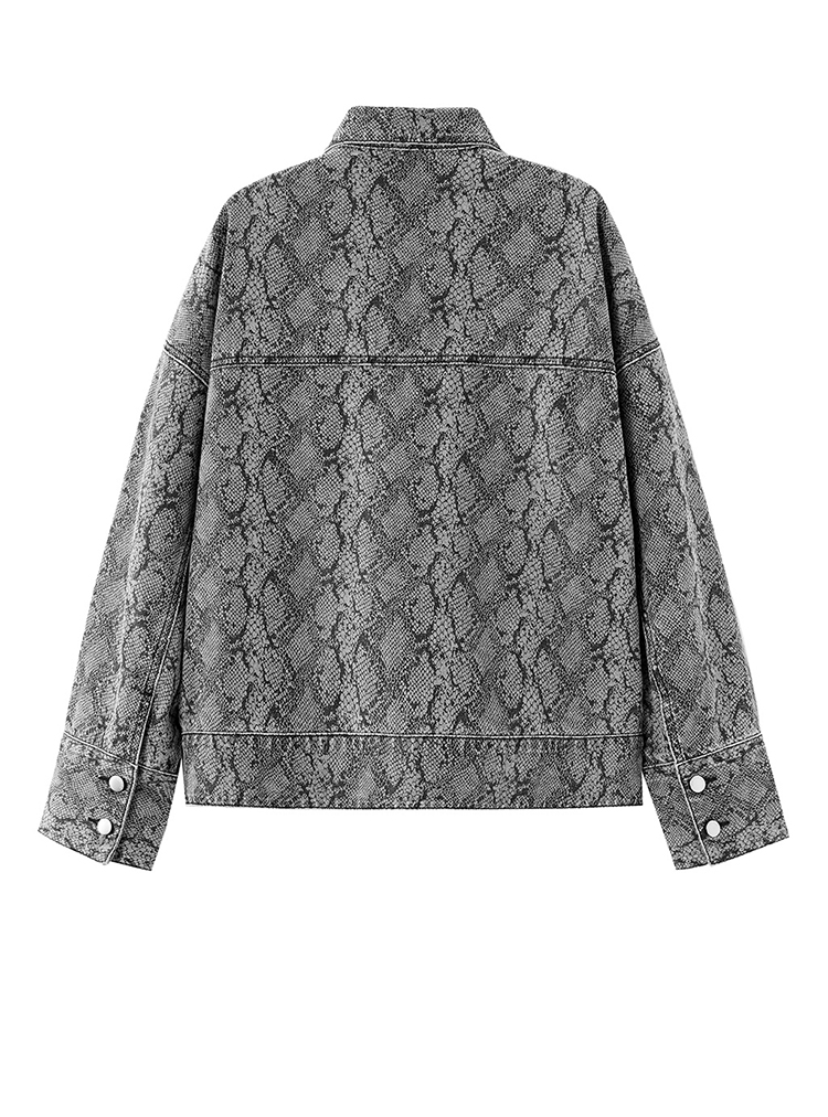 PEACE BIRD SNAKE PRINT DENIM JACKET IN GREY