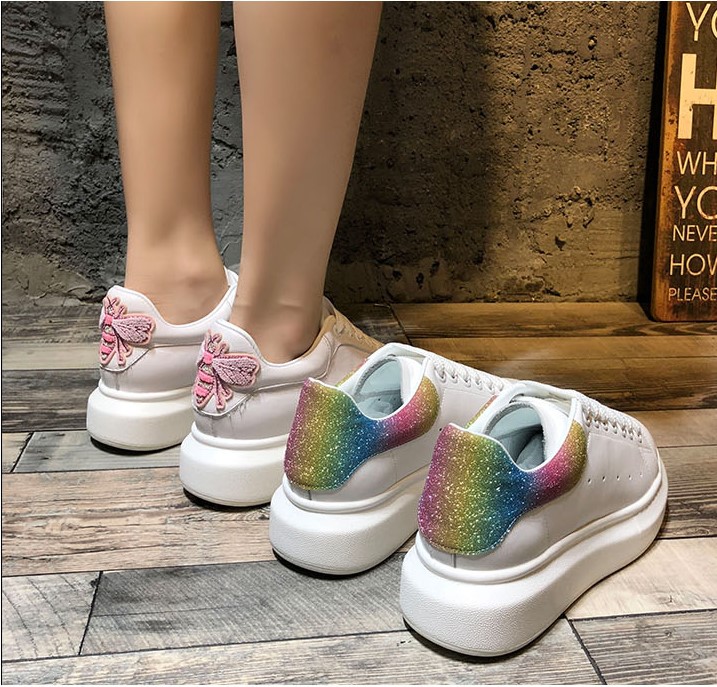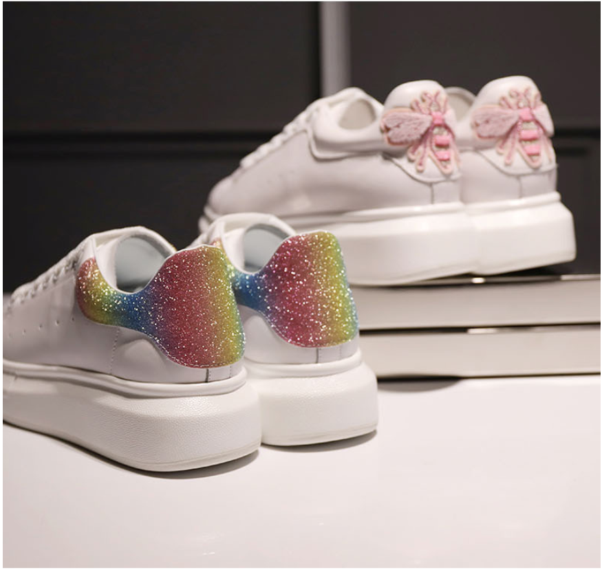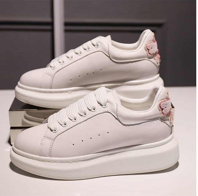 SVB FASHION WHITE LEATHER EMBROIDERED CHUNKY SOLE TRAINERS
