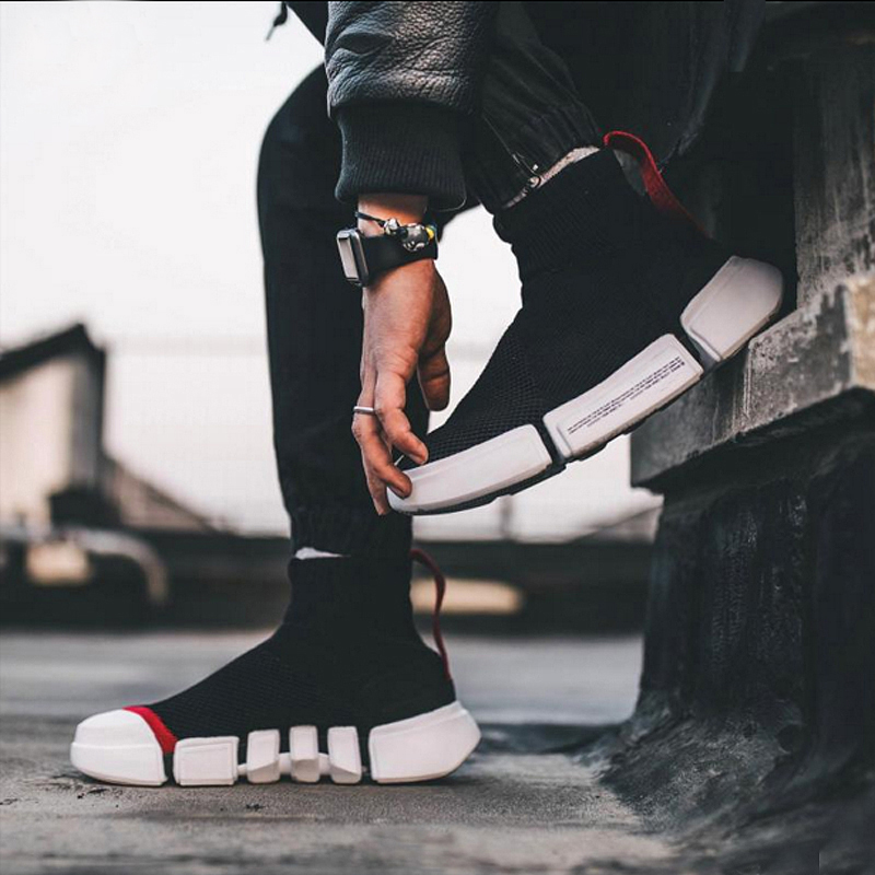 Sweet looks from the ground up Sock-like construction Slip-on style Chunky contrast sole