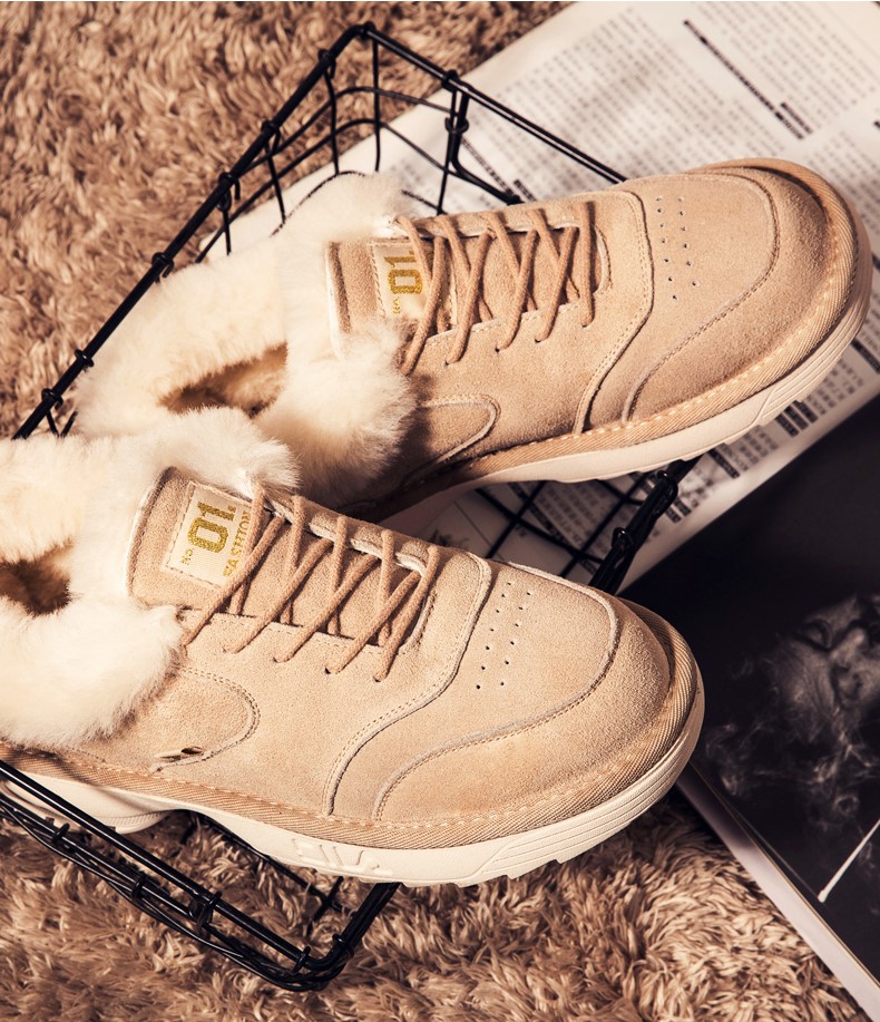 BOOPDO MESS DESIGN CLASSIC LACE UP SHORT WOOLEN BOOTS IN CAMEL SUEDE