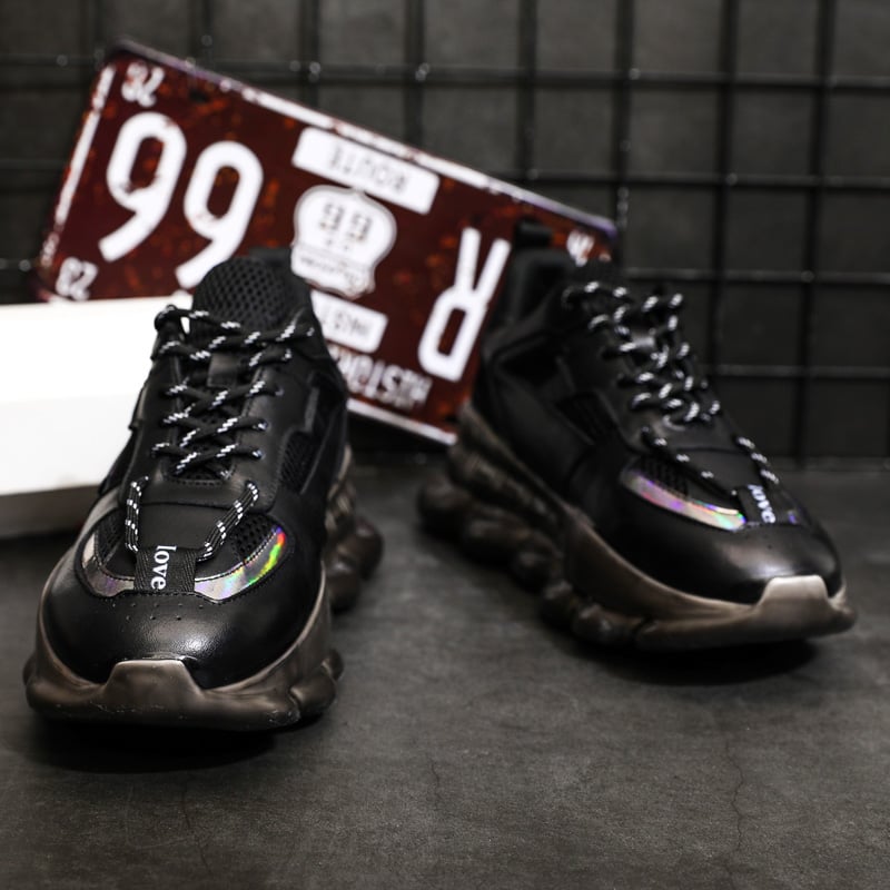 BOOPDO MESS DESIGN CHUNKY SOLE TRAINERS IN BLACK