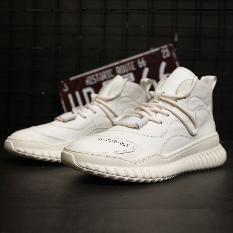 BOOPDO MESS DESIGN MID TOP LEATHER TRAINERS IN WHITE