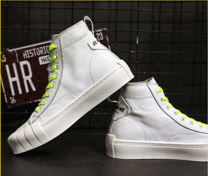 BOOPDO MESS DESIGN HI TOP LEATHER TRAINERS IN MULTI