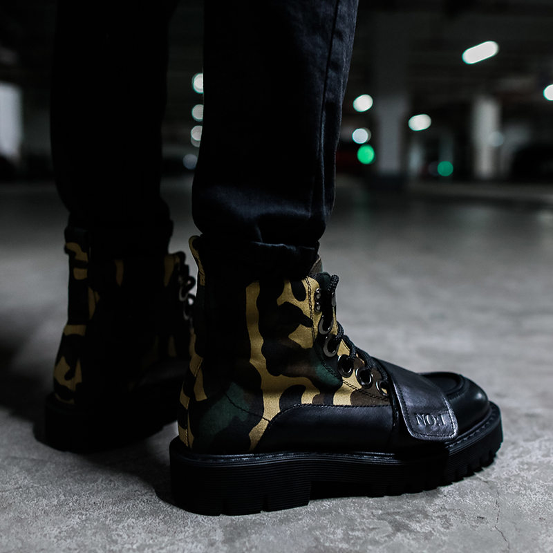 NADMIL DESIGN LEATHER BIKER BOOTS WITH BUCKLE DETAIL