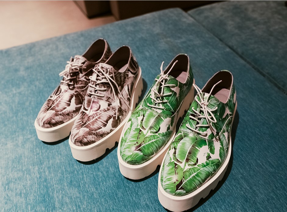 NADMIL DESIGN LEAVES PRINT LACE UP SHOES WITH CHUNKY SOLE
