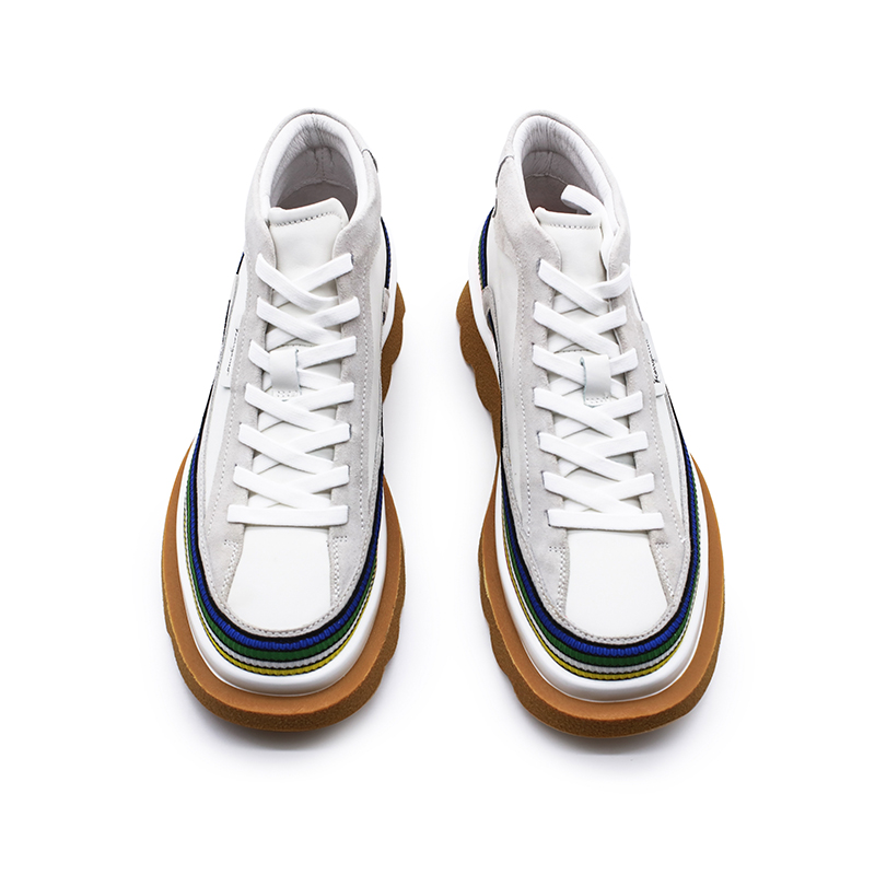 NADMIL DESIGN RAINBOW STRIPE WHITE LEATHER BOOTS