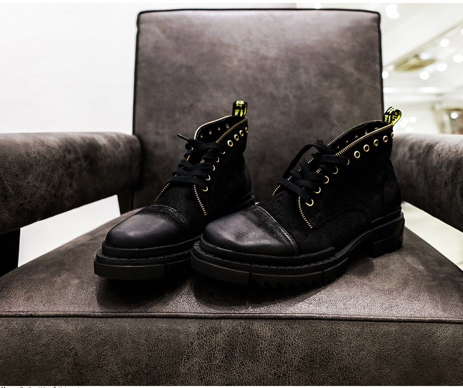 Lace-up fastening Pull tab Zip detail Chunky sole Nubuck leather upper