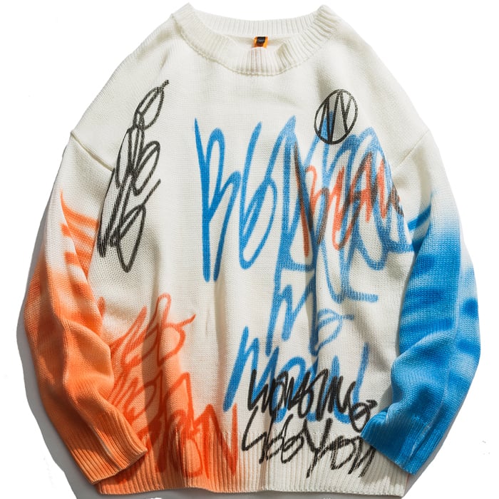 PUNK MONKA SPRAY PAINT GRAFFITI LETTER PRINT KNITWEAR SWEATER