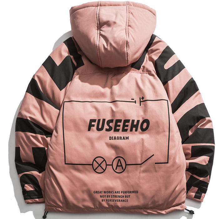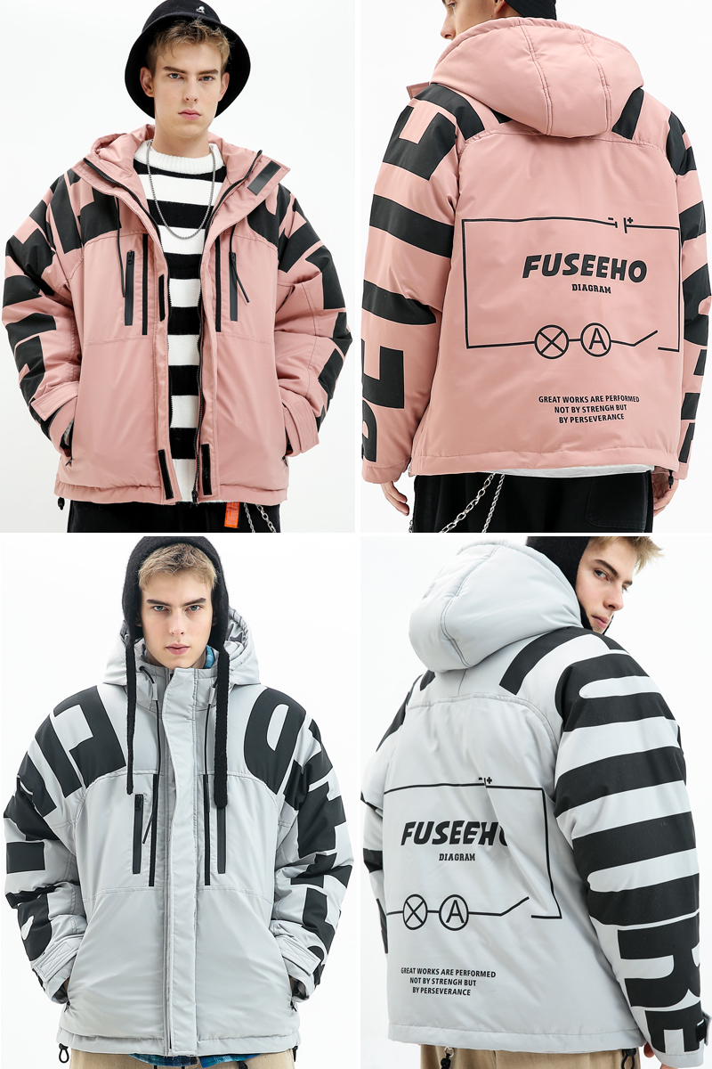 ATMOS FUSEEHO DIAGRAM VELCRO TAPE SLEEVE PADDED COTTON JACKET WITH HOODIE